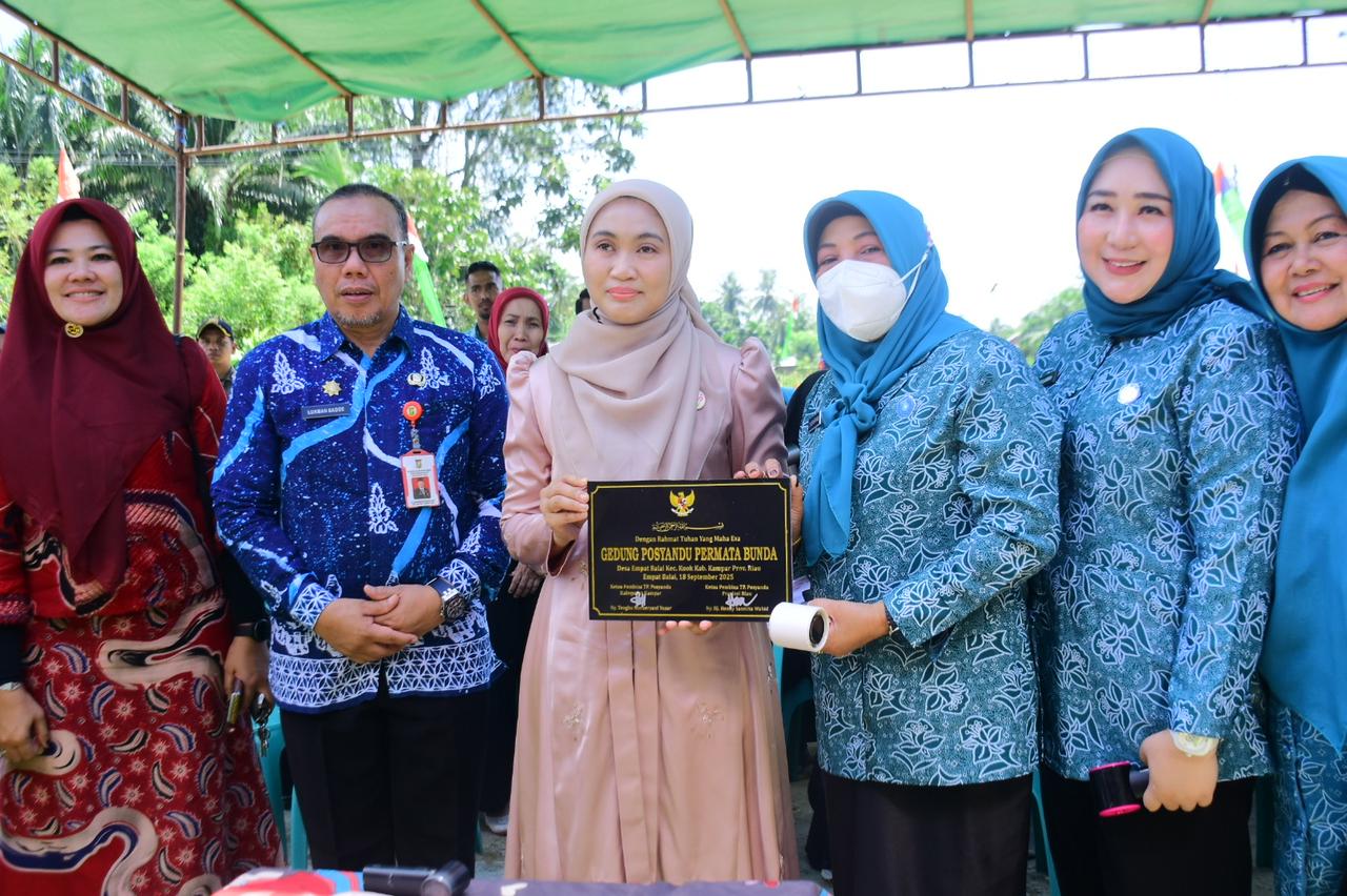 KUOK - Ketua TP-PKK Kabupaten Kampar Tengku Nurheryani Ahmad Yuzar, bersama Ketua TP-PKK Provinsi Riau Hj Henny Sasmita Wahid resmikan Posyandu Permata Bunda Dusun Pulau Balai Desa Empat Balai Kecamatan Kuok, Kamis (18/9/2025).