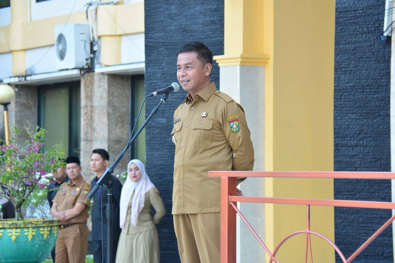 Bangkinang Kota - Dalam meningkatkan kedisiplinan dan Pelayanan Kepada Masyarakat, Bupati Kampar H. Ahmad Yuzar, S.Sos, MT Pimpin langsung Apel Gabungan diruang lingkup Pemkab Kampar, yang diselenggarakan di Halaman Kantor Bupati Kampar, Senin (6/10/2025).